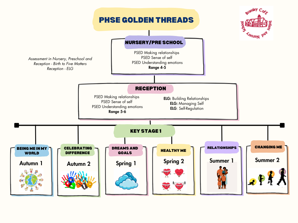 Below is an overview of PSHE learning across all year groups, including our Golden Threads.
